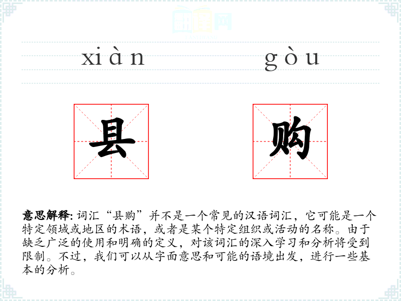 "县购"的意思解释、县购是什么意思由翻译网汉语词典查词提供。