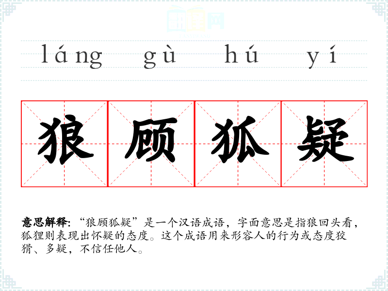 “狼顾狐疑”是一个汉语成语,字面意思是指狼回头看,狐狸则表现出怀疑的态度。这个成语用来形容人的行为或态度狡猾、多疑,不信任他人。