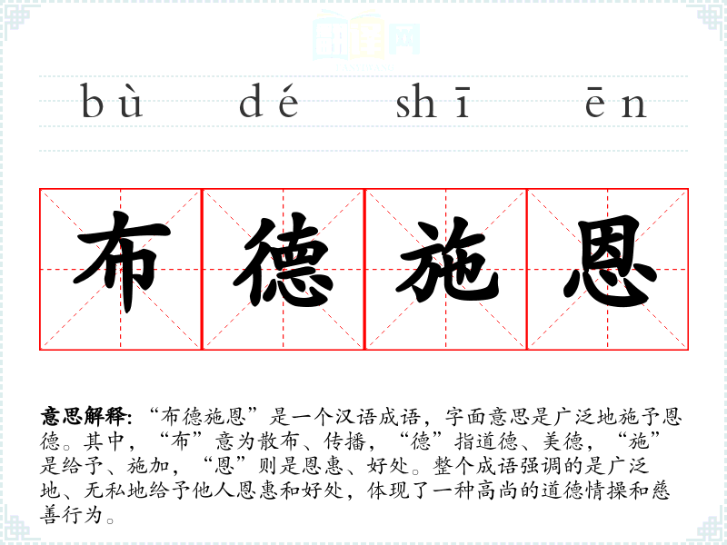 在英语中,类似的表达可能是“spread kindness”或“generosity”,虽然不如“布德施恩”那样具有深厚的文化内涵,但也传达了类似的慷慨和慈善的意义。