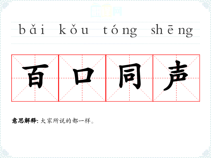 "百口同声"的意思解释、百口同声是什么意思由翻译网汉语词典查词提供。