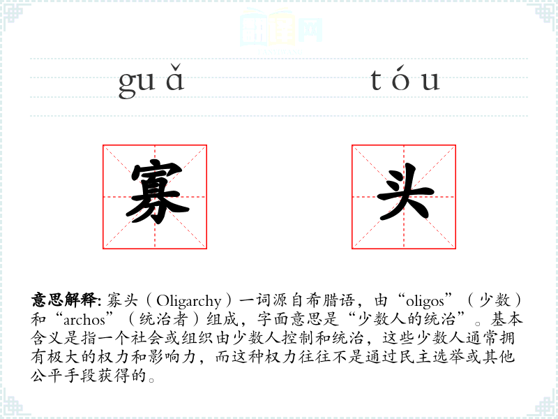 "寡头"的意思解释、寡头是什么意思由翻译网汉语词典查词提供。