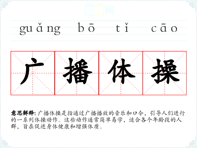 "广播体操"的意思解释、广播体操是什么意思由翻译网汉语词典查词提供。