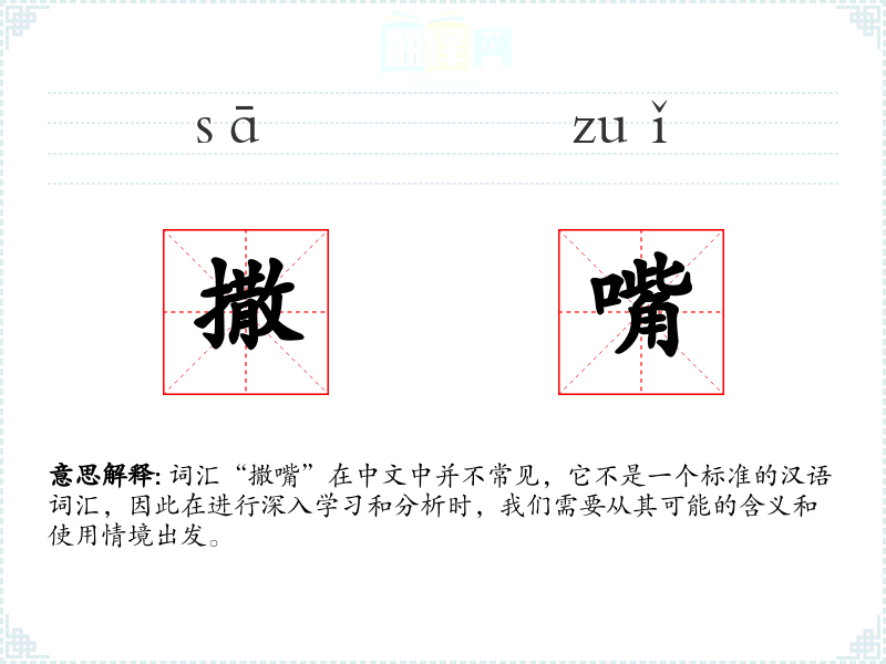 词汇“撒嘴”在中文中并不常见,它不是一个标准的汉语词汇,因此在进行深入学习和分析时,我们需要从其可能的含义和使用情境出发。