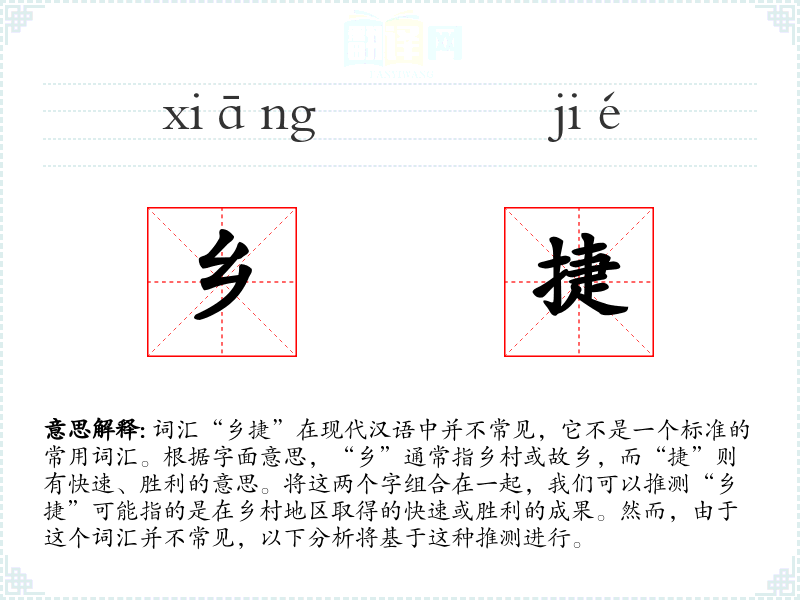 “乡捷”可能指的是在乡村地区取得的快速或胜利的成果,或者是指与乡村相关的某种成功或便捷的情况。