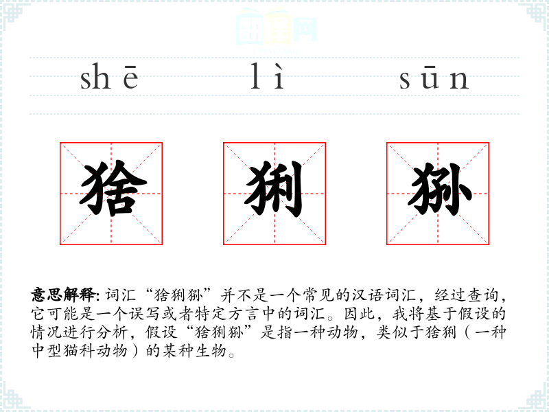 词汇“猞猁狲”并不是一个常见的汉语词汇,经过查询,它可能是一个误写或者特定方言中的词汇。因此,我将基于假设的情况进行分析,假设“猞猁狲”是指一种动物,类似于猞猁(一种中型猫科动物)的某种生物。