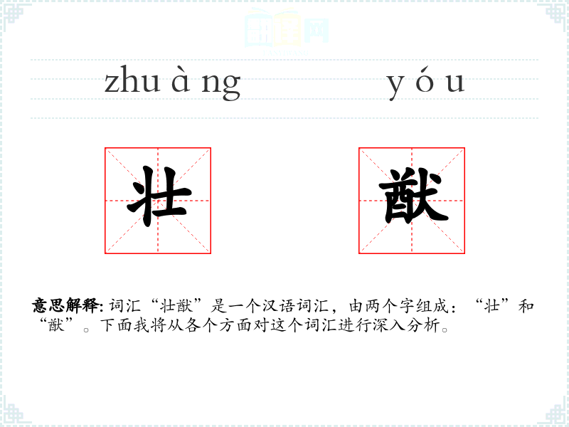 词汇“壮猷”是一个汉语词汇,由两个字组成:“壮”和“猷”。下面我将从各个方面对这个词汇进行深入分析。