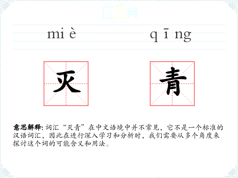 词汇“灭青”在中文语境中并不常见,它不是一个标准的汉语词汇,因此在进行深入学习和分析时,我们需要从多个角度来探讨这个词的可能含义和用法。