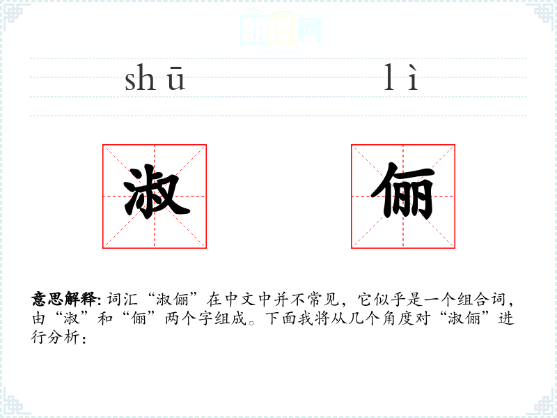 词汇“淑俪”在中文中并不常见,它似乎是一个组合词,由“淑”和“俪”两个字组成。下面我将从几个角度对“淑俪”进行分析: