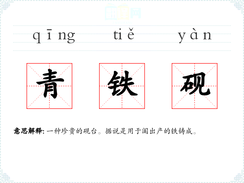 一种珍贵的砚台。据说是用于阗出产的铁铸成。