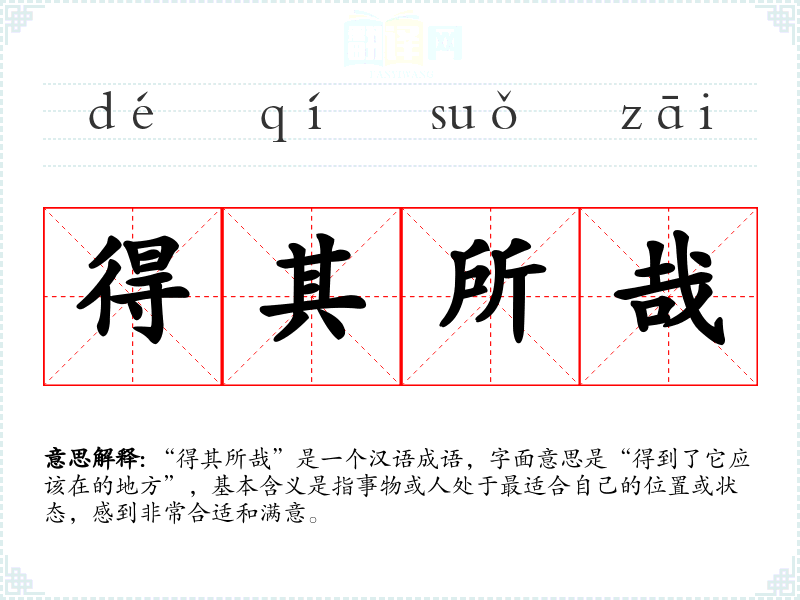 “得其所哉”是一个汉语成语,字面意思是“得到了它应该在的地方”,基本含义是指事物或人处于最适合自己的位置或状态,感到非常合适和满意。