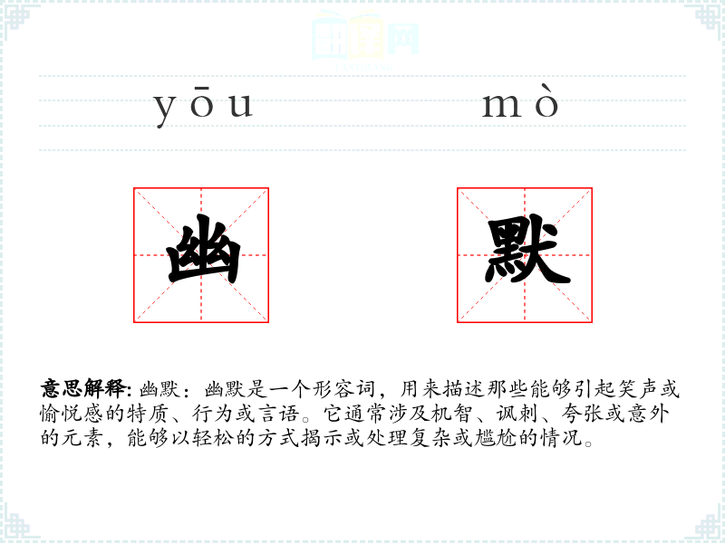 "幽默"的意思解释、幽默是什么意思由翻译网汉语词典查词提供。