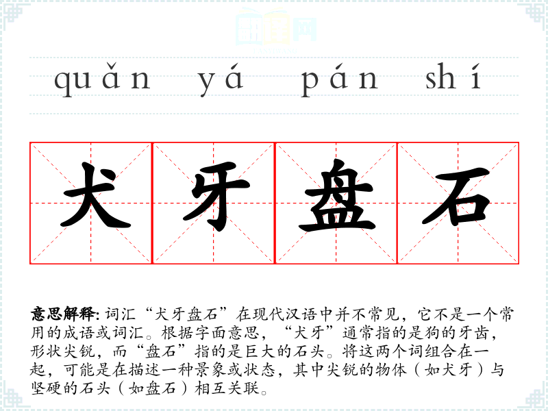 由于“犬牙盘石”不是一个常用词汇,它在不同语言或文化中的对应词汇及其使用情况不详。