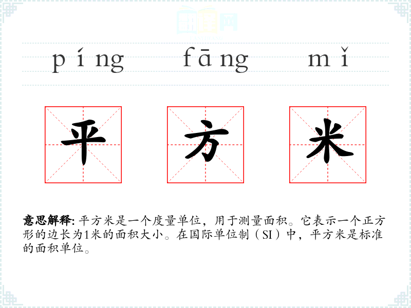 "平方米"的意思解释、平方米是什么意思由翻译网汉语词典查词提供。