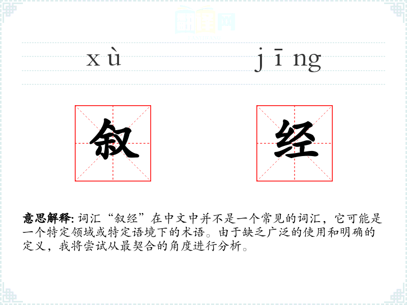 - 反义词:无(由于“叙经”不是一个常见的词汇,很难找到直接的反义词)