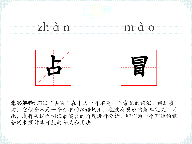 由于“占冒”不是一个标准词汇,我们可以尝试从字面意思来解释: