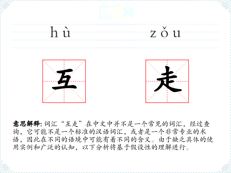词汇“互走”在中文中并不是一个常见的词汇,经过查询,它可能不是一个标准的汉语词汇,或者是一个非常专业的术语,因此在不同的语境中可能有着不同的含义。由于缺乏具体的使用实例和广泛的认知,以下分析将基于假设性的理解进行。
