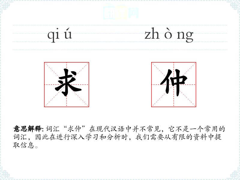 词汇“求仲”在现代汉语中并不常见,它不是一个常用的词汇,因此在进行深入学*和分析时,我们需要从有限的资料中提取信息。
