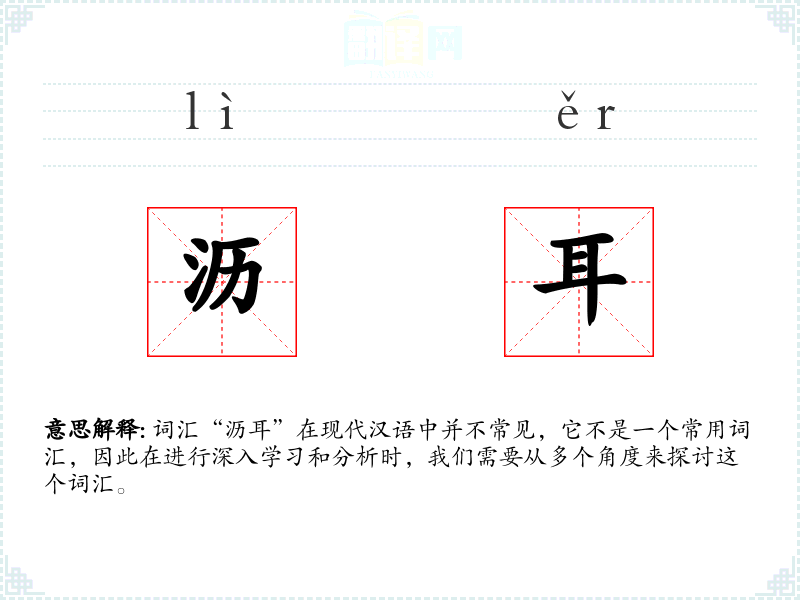 词汇“沥耳”在现代汉语中并不常见,它不是一个常用词汇,因此在进行深入学*和分析时,我们需要从多个角度来探讨这个词汇。