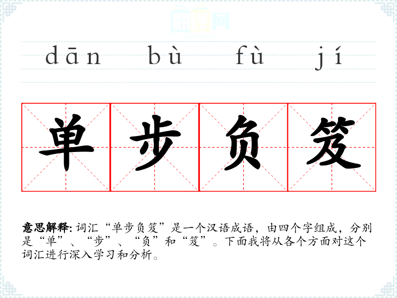 词汇“单步负笈”是一个汉语成语,由四个字组成,分别是“单”、“步”、“负”和“笈”。下面我将从各个方面对这个词汇进行深入学*和分析。