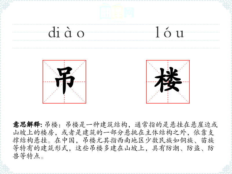 - 同义词:悬楼、吊脚楼