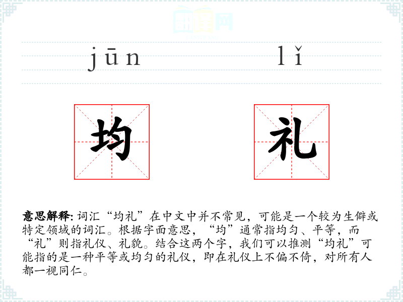 “均礼”的字面意思和基本含义是指在礼仪或礼节上保持平等和均匀,不偏袒任何一方。