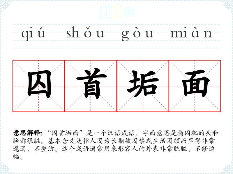 "囚首垢面"的意思解释、囚首垢面是什么意思由翻译网汉语词典查词提供。