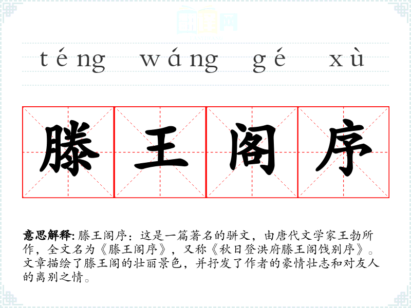 "滕王阁序"的意思解释、滕王阁序是什么意思由翻译网汉语词典查词提供。