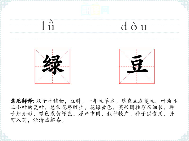 绿豆的分字解释