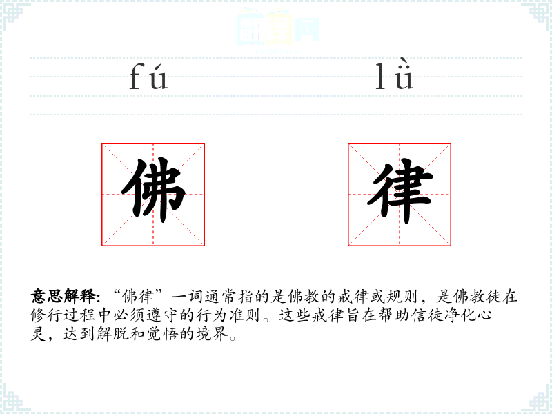 在不同文化中,“佛律”可能对应不同的词汇,但其核心含义相似,都是指**或精神修行中的行为准则。例如,在英语中,“Buddhist precepts”或“Buddhist discipline”可以对应“佛律”。