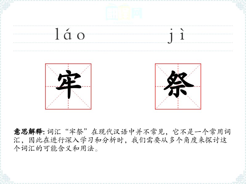词汇“牢祭”在现代汉语中并不常见,它不是一个常用词汇,因此在进行深入学*和分析时,我们需要从多个角度来探讨这个词汇的可能含义和用法。