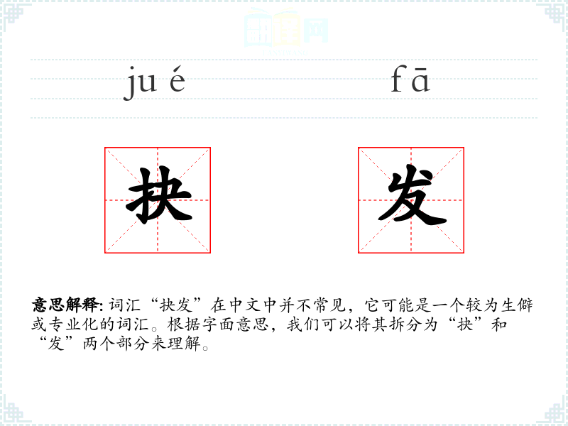 词汇“抉发”在中文中并不常见,它可能是一个较为生僻或专业化的词汇。根据字面意思,我们可以将其拆分为“抉”和“发”两个部分来理解。