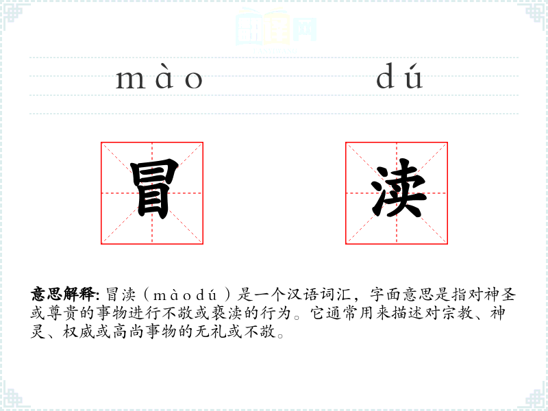 - 专业领域:在法律或研究中,冒渎可能特指对仪式或神圣文本的不敬行为。