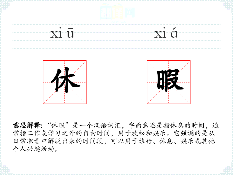 "休暇"的意思解释、休暇是什么意思由翻译网汉语词典查词提供。