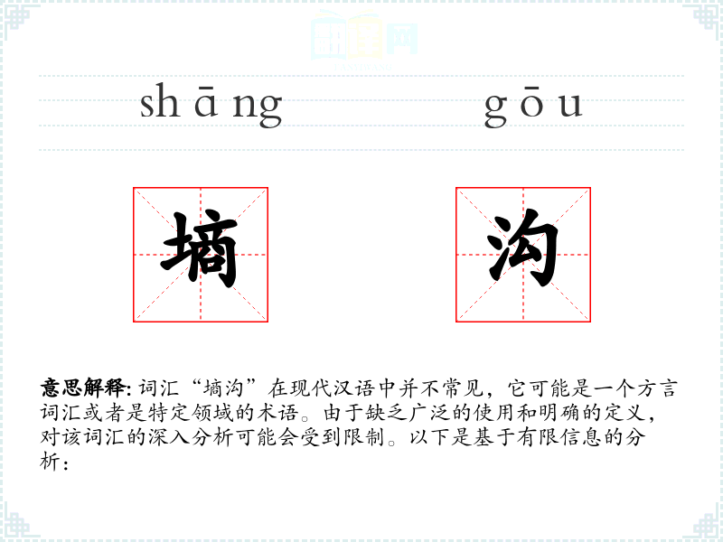 词汇“墒沟”在现代汉语中并不常见,它可能是一个方言词汇或者是特定领域的术语。由于缺乏广泛的使用和明确的定义,对该词汇的深入分析可能会受到限制。以下是基于有限信息的分析: