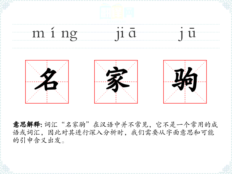 词汇“名家驹”在汉语中并不常见,它不是一个常用的成语或词汇,因此对其进行深入分析时,我们需要从字面意思和可能的引申含义出发。