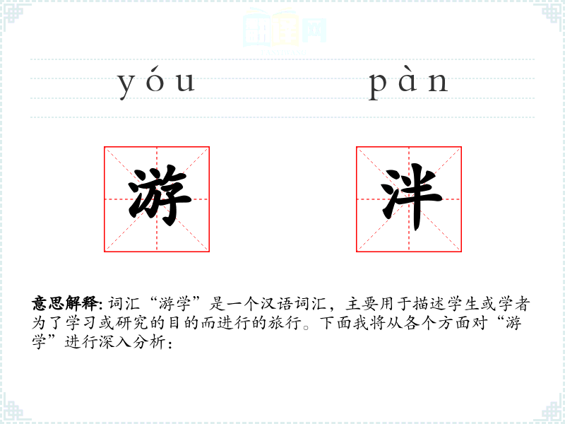 词汇“游学”是一个汉语词汇,主要用于描述学生或学者为了学*或研究的目的而进行的旅行。下面我将从各个方面对“游学”进行深入分析: