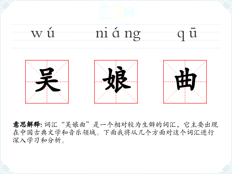 通过对“吴娘曲”的学和分析,我更加深刻地理解了这一词汇所蕴含的文化和艺术价值。在未来的语言学和表达中,我将更加注重对这类具有文化特色的词汇的学*和运用。