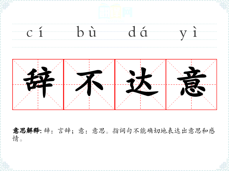 辞:言辞;意:意思。指词句不能确切地表达出意思和感情。