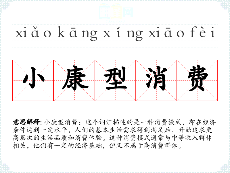 小康型消费:这个词汇描述的是一种消费模式,即在经济条件达到一定水平,人们的基本生活需求得到满足后,开始追求更高层次的生活品质和消费体验。这种消费模式通常与中等收入群体相关,他们有一定的经济基础,但又不属于高消费群体。