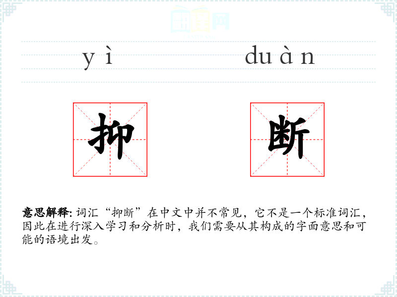 词汇“抑断”在中文中并不常见,它不是一个标准词汇,因此在进行深入学*和分析时,我们需要从其构成的字面意思和可能的语境出发。