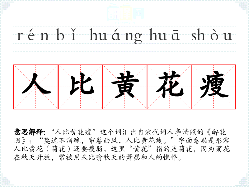 "人比黄花瘦"的意思解释、人比黄花瘦是什么意思由翻译网汉语词典查词提供。
