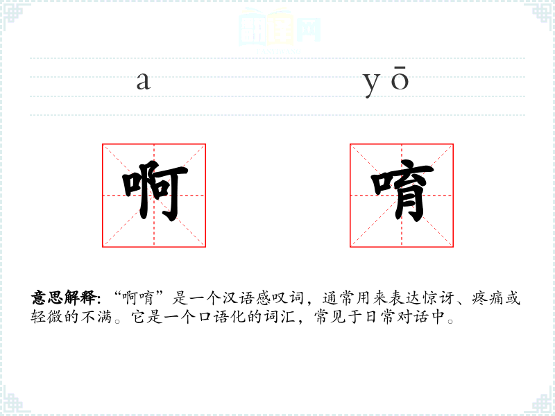 - 同义词:哎哟、哎呀、哎呦