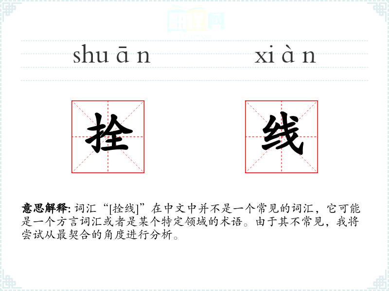 词汇“[拴线]”在中文中并不是一个常见的词汇,它可能是一个方言词汇或者是某个特定领域的术语。由于其不常见,我将尝试从最契合的角度进行分析。