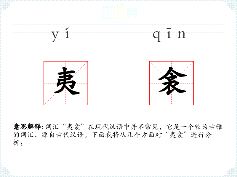 词汇“夷衾”在现代汉语中并不常见,它是一个较为古雅的词汇,源自古代汉语。下面我将从几个方面对“夷衾”进行分析: