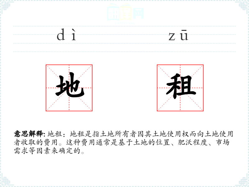 - 同义词:租金、土地使用费、地价