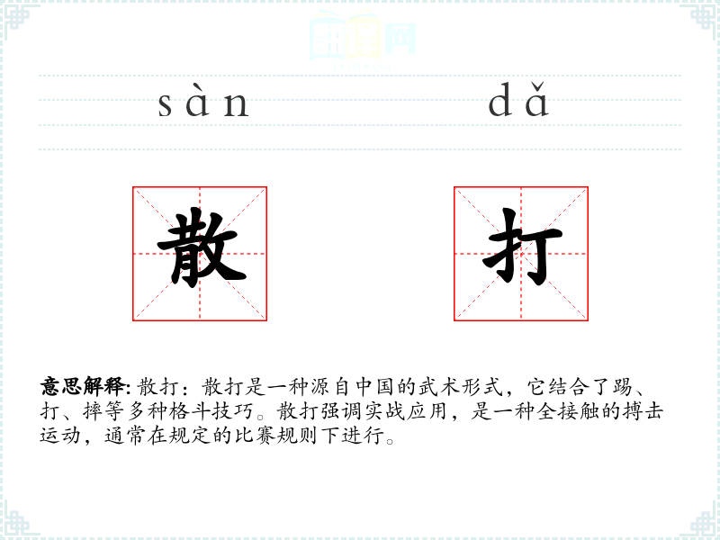 - 专业领域:在武术和体育领域,散打是一个专业术语,用于指代这种特定的武术和竞技形式。