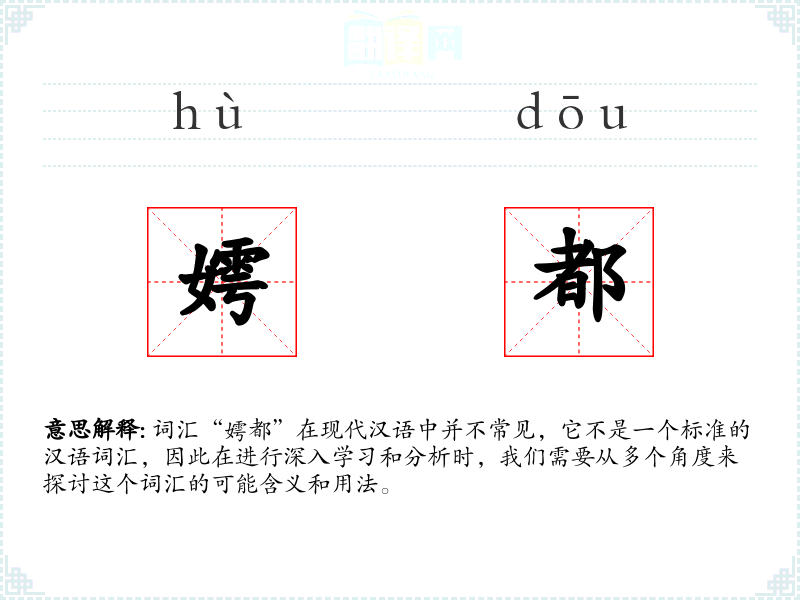 综上所述,词汇“嫮都”在现代汉语中并不存在,因此无法进行深入的学习和分析。如果这个词汇是来自某个特定的方言、古文或者是某个社群的俚语,那么需要更多的上下文信息才能进行进一步的研究。