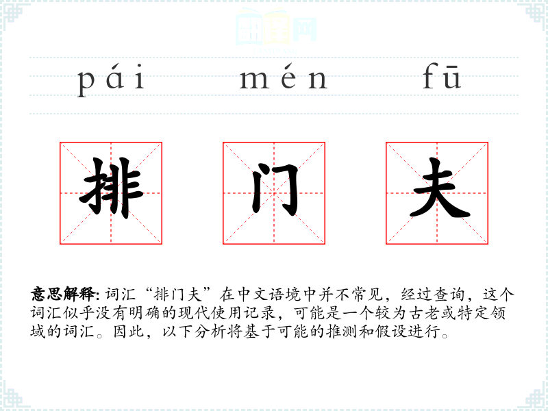 词汇“排门夫”在中文语境中并不常见,经过查询,这个词汇似乎没有明确的现代使用记录,可能是一个较为古老或特定领域的词汇。因此,以下分析将基于可能的推测和假设进行。