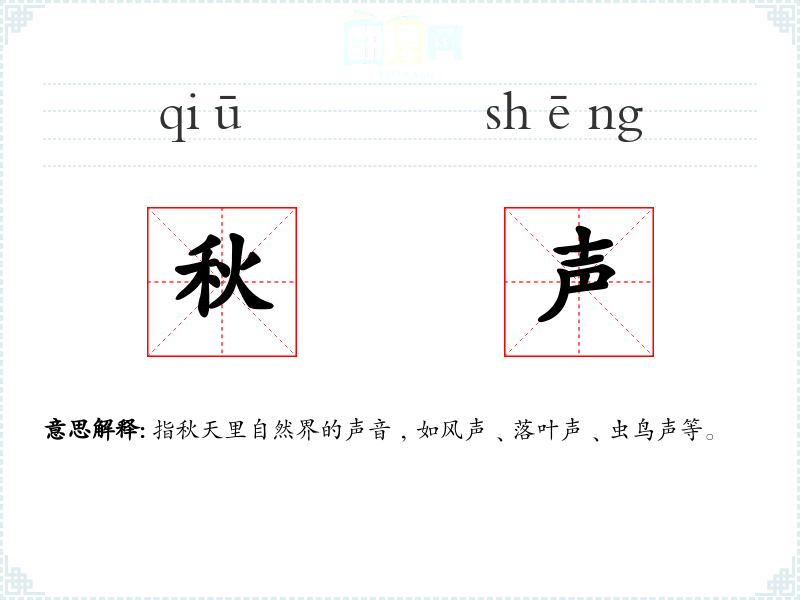 指秋天里自然界的声音﹐如风声﹑落叶声﹑虫鸟声等。