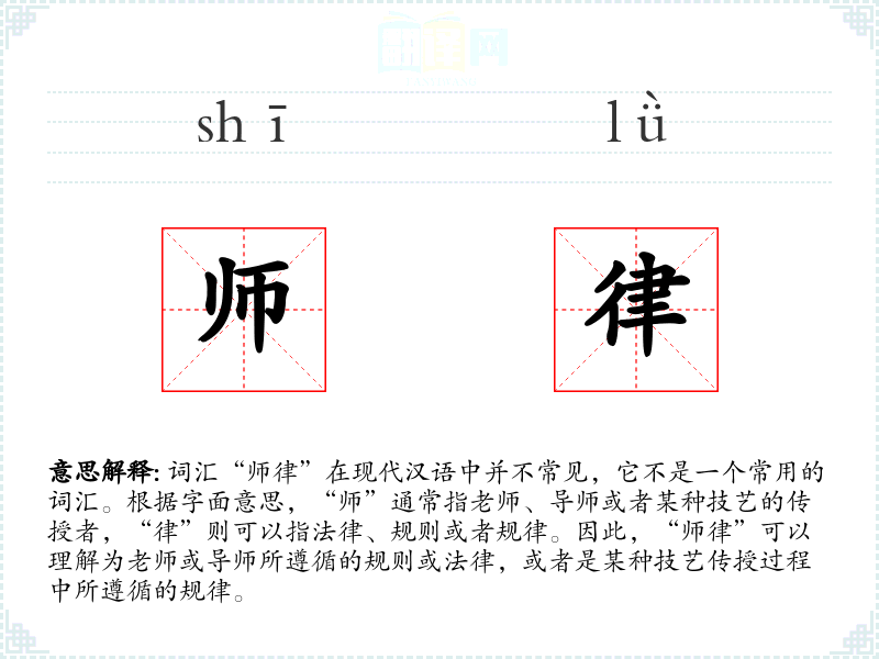 - 反义词:无(由于“师律”不常用,反义词难以确定)